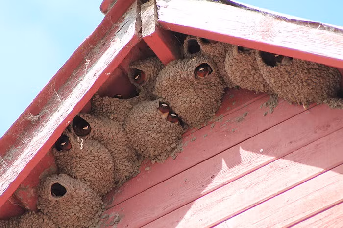 Tổ của loài chim sẻ lò đỏ được xây từ đất sét và bùn, chúng đủ chắc chắn để ngăn cản những mối nguy hiểm luôn rình rập