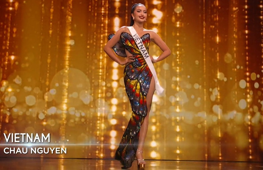 | Ngọc Châu cuốn hút trong bộ đầm dạ hội lấy cảm hứng từ cánh bướm tại bán kết Miss Universe 2022. |