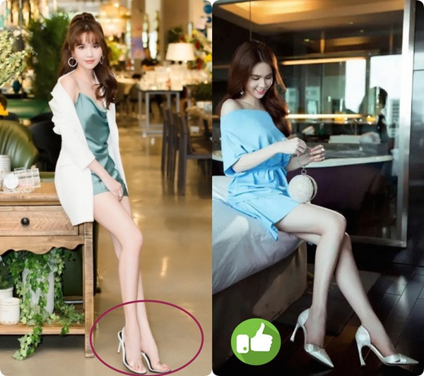 Ngón chân thô không "đội trời chung" với những đôi sandals quai mảnh sang chảnh, vậy mà Ngọc Trinh vẫn đi như thường. Những đôi sandals cao gót rất dễ lộ đôi chân thô với các ngón chân tõe hết cả, vẫn biết là sandals cao gót sang chảnh kiêu kỳ nhưng thiết kế này không dành cho Ngọc Trinh. Những bức ảnh được chăm chút cẩn thận từng chi tiết cũng không thể giấu được những ngón chân thô, xấu của Ngọc Trinh. Cùng một kiểu đầm xẻ cao với gam màu be trang nhã nhẹ nhàng, nhưng khi chọn những đôi sandals và cao gót khác, đôi chân của Ngọc Trinh nhìn bớt thô hơn nhiều. Nếu bạn cũng có nhược điểm như Ngọc Trinh, muốn chọn những đôi sandals cao gót hay chọn thiết kế có phần mũi chụm lại để tránh lộ ngón chân thô xấu. Lại thêm một dẫn chứng mà Ngọc Trinh chỉ cần chọn đôi cao gót bít mũi thôi là đã khéo che hết chân thô với ngón chân tòe tách xa nhau. Sandals trong suốt hay những đôi đan dây cầu kỳ, tưởng bắt trend thời thượng ngút ngàn nào ngờ lại phơi bày tất cả nhược điểm đôi chân Bao nhiêu "tinh hoa" chân xấu lộ hết qua những đôi sandals/ giày trong suốt mà Ngọc Trinh đi.