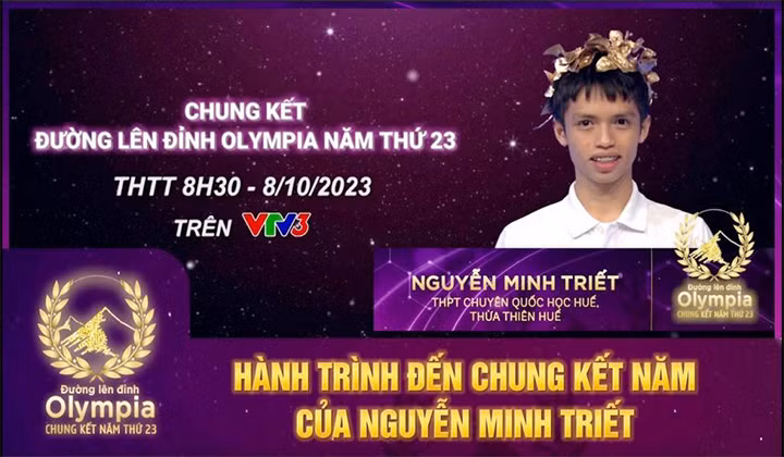 Em Nguyễn Minh Triết hiện đang là học sinh lớp 12, chuyên Lý 1, Trường THPT chuyên Quốc học - Huế. Em Triết có kết quả nhất tuần, nhất tháng, nhất quý 2 với số điểm thuyết phục và giành suất vào Chung kết năm “Đường lên đỉnh Olympia” năm 2023, vinh dự mang cầu truyền hình lần thứ 6 về cho tỉnh Thừa Thiên – Huế.