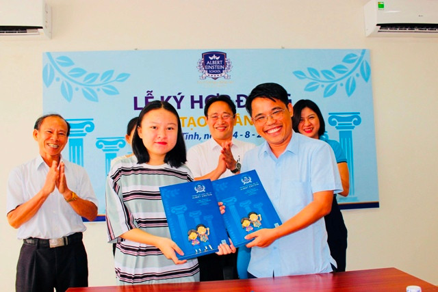 Năm học 2018 - 2019, Trường liên cấp Albert Enstein đã chính thức ký kết hợp đồng đào tạo nguồn nhân lực với em Trần Thùy Dung (học sinh Trường PTTH Phan Đình Phùng trúng tuyển vào ĐHQG Hà Nội khoa Tiếng Anh) và em Nguyễn Thị Anh (học sinh Trường PTTH Kỳ Anh trúng tuyển vào ĐHSP Hà Nội khoa Tiếng Anh tiểu học).