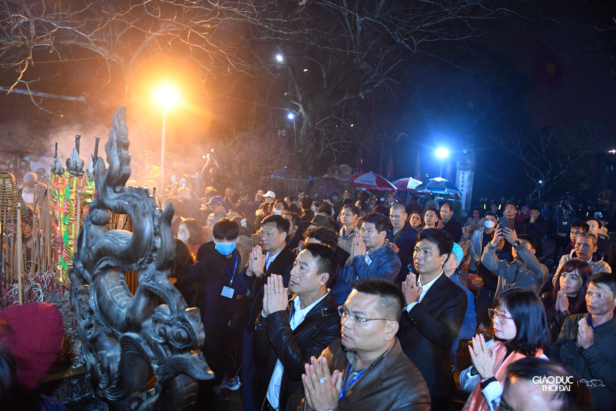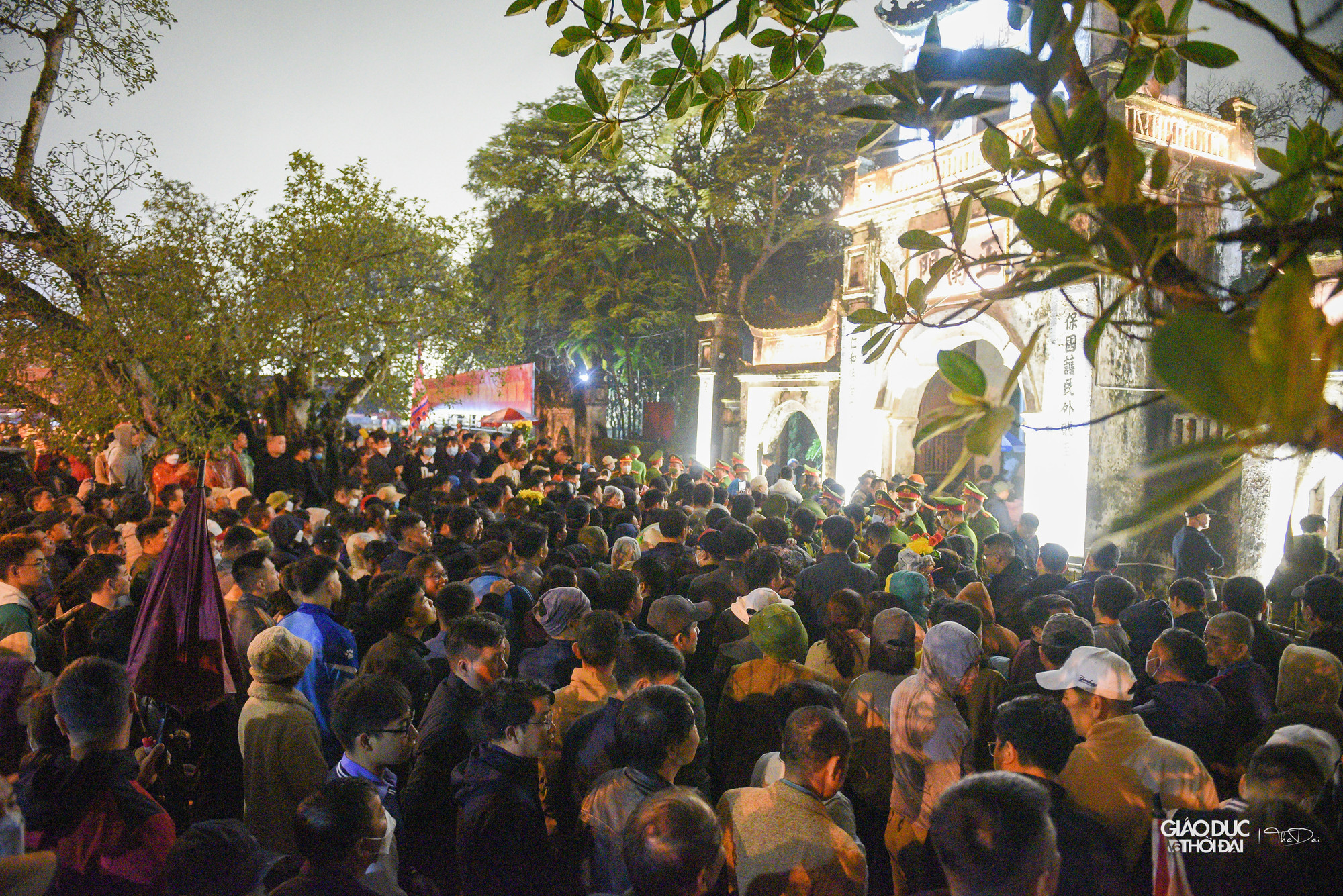 | Bắt đầu từ tối, rất đông người dân đã có mặt tại khu vực cổng đền để chờ vào dâng lễ. |