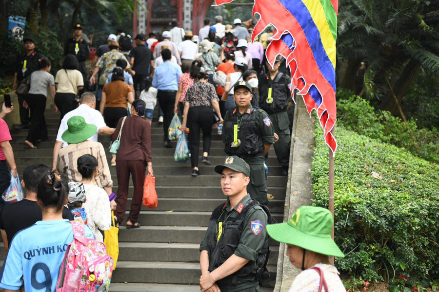 Để đảm bảo trật tự, tránh gây ùn tắc, chen lấn, xô đẩy trong đoạn đường lên núi Nghĩa Lĩnh, hơn 1.000 người gồm lực lượng công an, quân đội và thanh niên tình nguyện được huy động, phân bố thành nhiều chốt, hàng rào an ninh, triển khai công tác đảm bảo an toàn cho lễ hội.