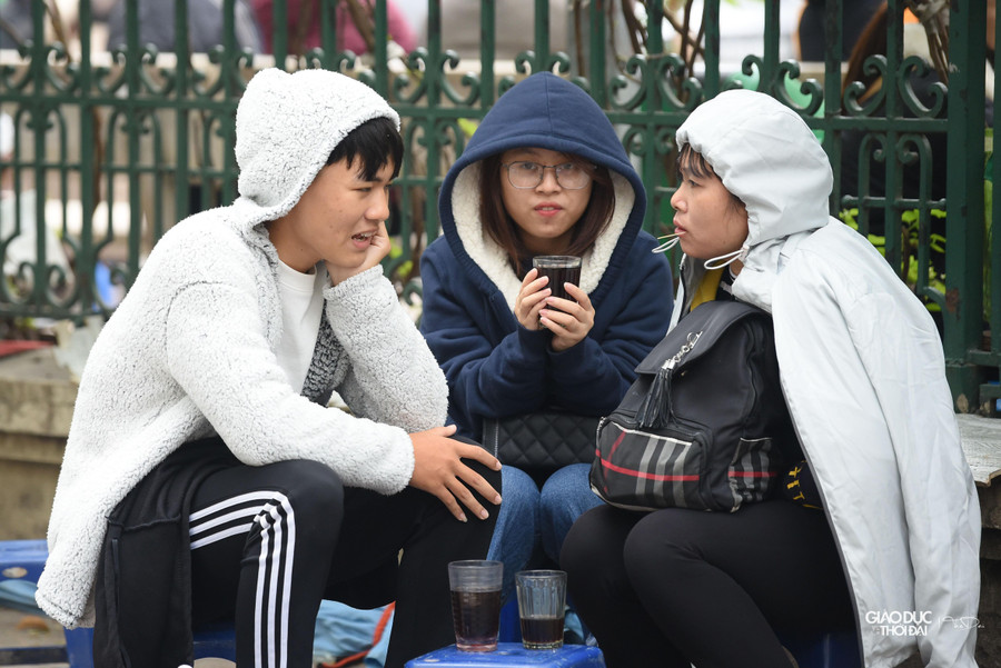 | Nhiều người dân khi ra đường, học sinh đến trường đã phải mặc áo bông, áo khoác để giữ ấm cơ thể khi trời gió rét. |