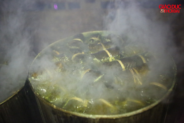 | "Sau 12 tiếng mới có thể vớt bánh, coi như là thức trắng đêm, chưa kể phải liên tục tiếp nước để bánh chưng chín đều. Mỗi một đêm tôi nấu được khoảng 170 cái, năm nay lượng bánh chưng tôi làm gấp đôi năm ngoái do nhu cầu tăng cao nên mất khoảng 3 đêm mới xong", chú Sơn chia sẻ. |