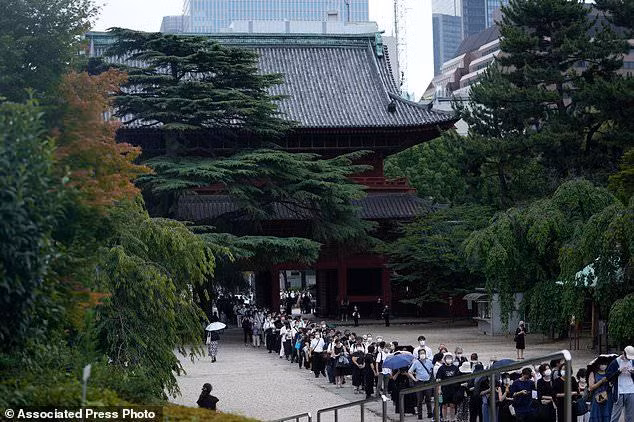 GD&TĐ - Hàng trăm người đứng bên đường ngoài ngôi chùa Zojoji ở trung tâm thành phố Tokyo để tiễn biệt lần cuối ông Shinzo Abe .