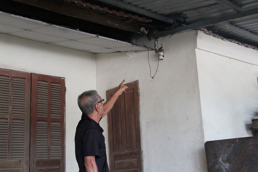 “Kể từ đó đến nay, trải qua thời gian, căn nhà bị xuống cấp nghiêm trọng. Những thanh gỗ đòn nâng đỡ mái ngói đã bị mối mọt ăn rỗng bên trong nên chỉ cần lực nhỏ tác động là có thể đổ sập. Hôm đó, con dâu tôi bắc ghế lên để lấy quần áo cho các cháu đi học thì bất ngờ mái ngói đổ sập xuống khiến bất tỉnh tại chỗ, phải khâu 5 mũi và nằm viện điều trị hơn 10 ngày”, ông Tuất kể.