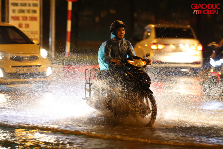 | Tại tuyến đường Tố Hữu nước ngập tại nhiều điểm gây khó khăn cho đi lại |