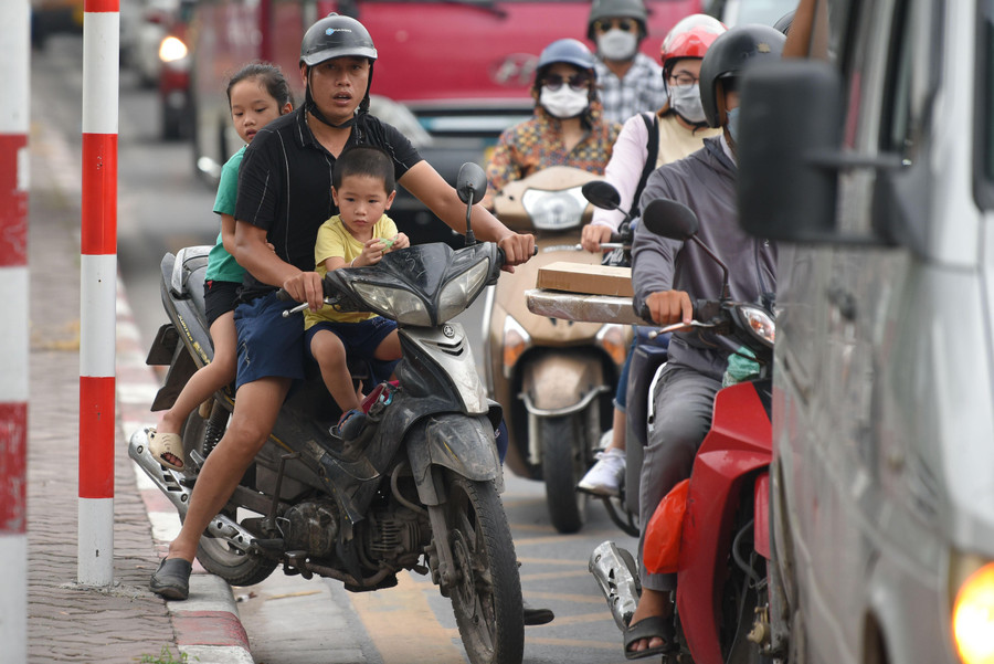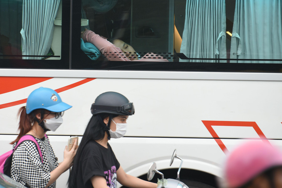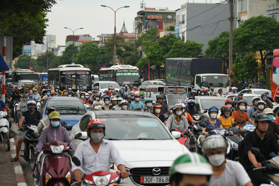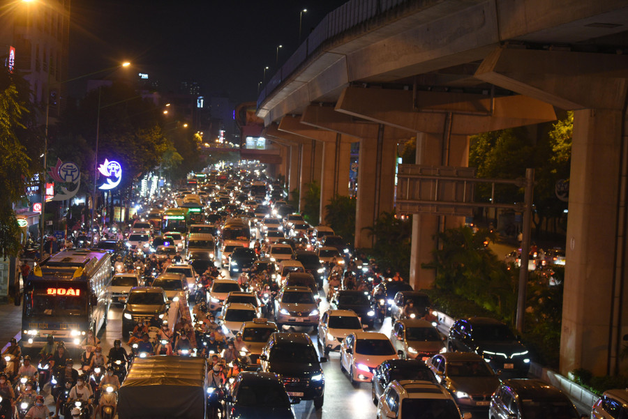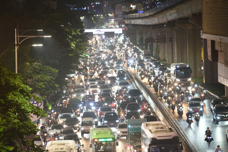 | Tại tuyến đường Giải Phóng, gần bến xe Nước Ngầm càng về chiều tối, lượng phương tiện đổ ra hướng ngoại thành càng đông hơn. |