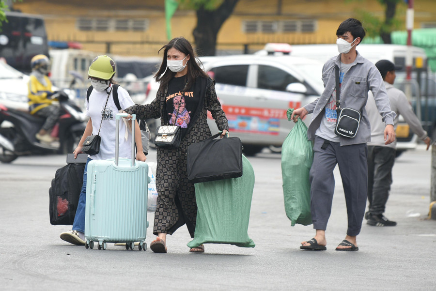 | Chị Quách thị Nhàn cho biết, ngày sau khi hết ca làm việc chiều ngày hôm nay, chị cùng con đã lựa chọn về quê tại Vĩnh Phúc, cho dù biết đi vào khoảng thời gian trên sẽ đông và vất vả nhưng chị vẫn lựa chọn đi về do có con nhỏ, nên chị muốn về nhà sớm hơn. |