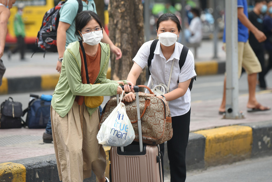 | Người dân lỉnh kỉnh đồ đạc để về quê dịp nghỉ lễ 2/9. |
