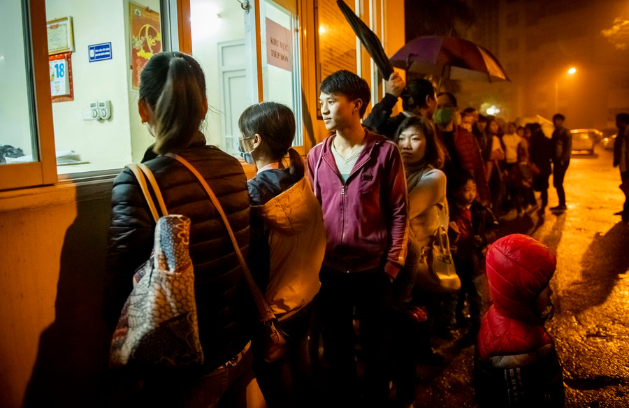 Ông Hòa (bảo vệ tại bệnh viện) cho biết tại viện chưa xảy ra tình trạng như thế này bao giờ, mọi người đến từ 2h, mọi người trong viện phải viết số rồi hướng dẫn vào nơi khám bệnh. Trời mưa phùn lạnh chỉ khổ các cháu".