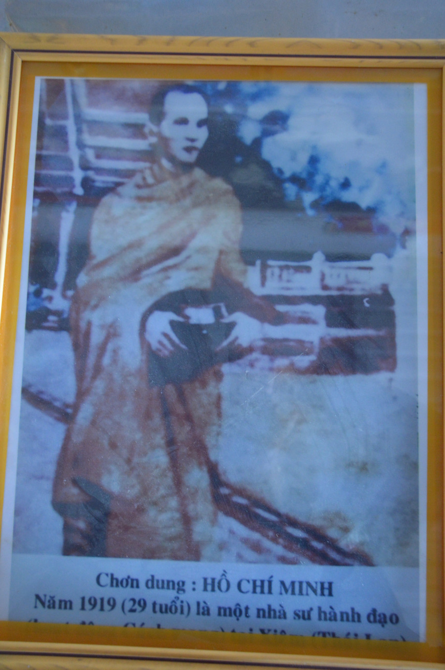 Lần khác, anh theo mẹ đi vào một ngôi chùa. Thấy một nhà sư đang thắp hương trước tấm ảnh của một người thanh niên trẻ, mắt sáng quắc. Anh hỏi thì được nhà sư cho biết: “Đó là một vị Thánh của dân ta”. Anh lại càng thắc mắc nhiều hơn.