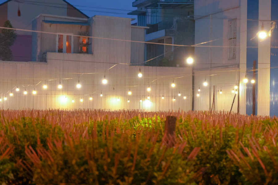 Vào mỗi tối, người dân đều chong đèn để chăm sóc hoa làm sáng rực khắp các con đường. Ông Nguyễn Huy Hoàng (trú tại tổ 4 Vân Dương, phường Thủy Vân) cho biết, việc thắp đèn ban đêm giúp hoa có đủ ánh sáng để phát triển tốt hơn.