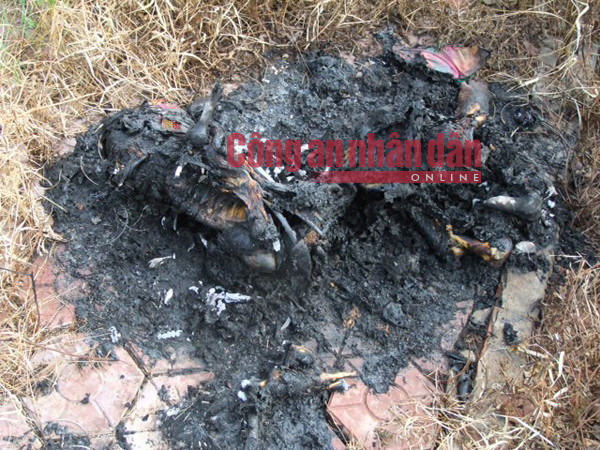 | Hiện trường nơi phát hiện xác phụ nữ bị cháy. |