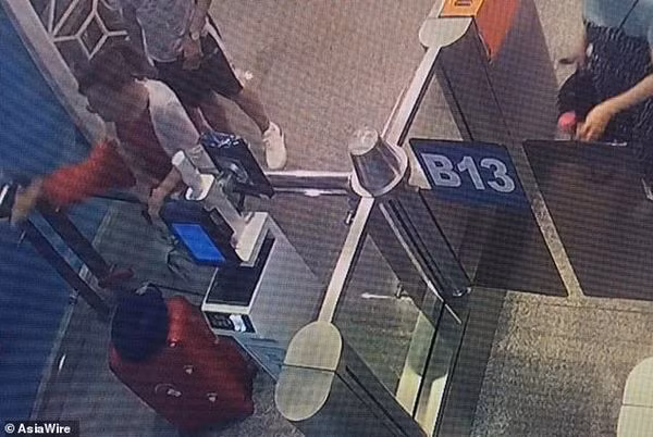 Người phụ nữ này ngay lập tức ném vali qua rào chắn và nhảy vào sân ga trong khi các nhân viên tìm cách chặn cô ta lại. Nhân lúc hỗn loạn, người em trai và bạn của Wang cũng nhanh chóng trèo vào sân ga.