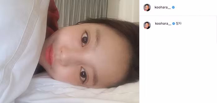 Trước đó một ngày, Goo Hara đã đăng tải một bức ảnh lên Instagram cùng với chú thích: "Ngủ ngon nhé".