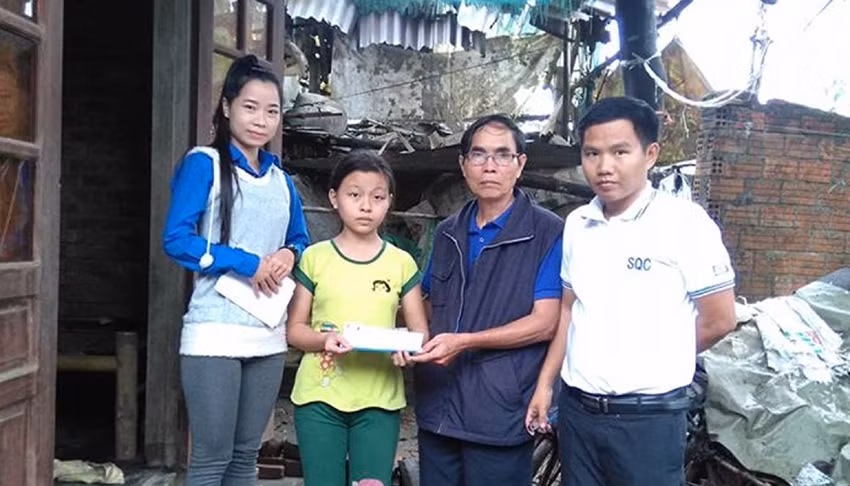 Nói rồi, thầy Nghĩa lấy một cuốn sổ đưa cho chúng tôi xem. Cuốn sổ ghi chép cẩn trọng tên người hỗ trợ, số tiền và chi tiết từng khoản chi để xây dựng ngôi nhà “Nâng cánh ước mơ” cho em Võ Thị Xuân Ngoan (lớp 6C, Trường THCS Đức Phú, huyện Mộ Đức). Thầy bảo, mỗi ngôi nhà được hỗ trợ xây dựng có một cuốn sổ ghi chép, theo dõi để sau này công khai, tất cả đều có Ủy ban MTTQ Việt Nam ở địa phương đóng dấu làm tin. Nhà của em Ngoan mới khánh thành với tổng kinh phí 58 triệu đồng.