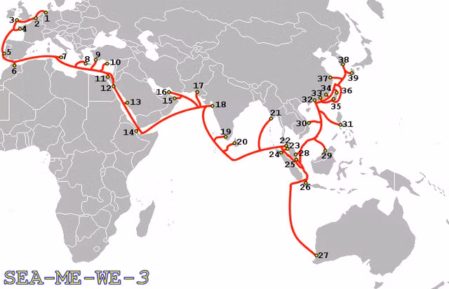 Chưa gặp sự cố: Tuyến Cáp quang Biển SEA-ME-WE3 (SMW-3)