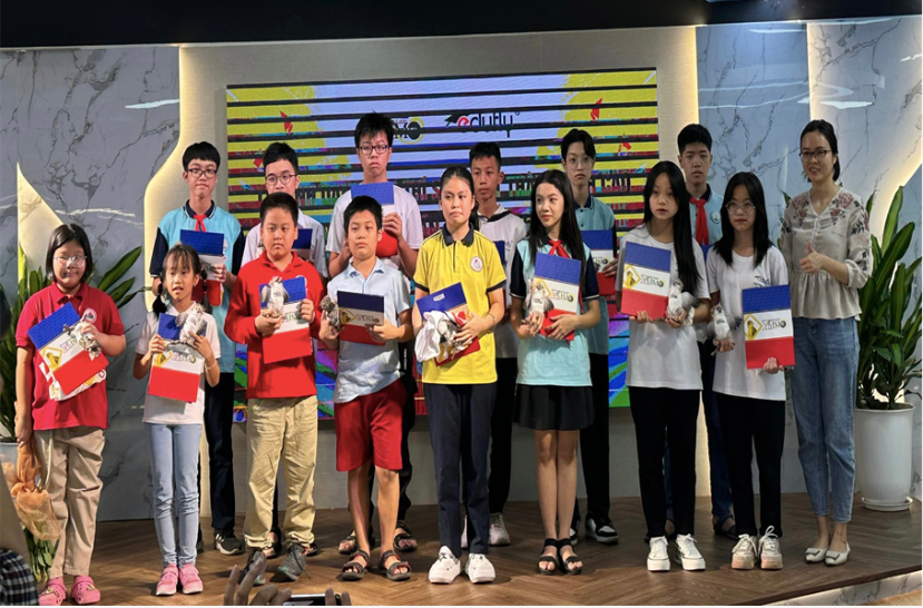 | Em Hùng Minh cùng các bạn trong đội tuyển WMTC của trường Tiểu học Tràng An. |