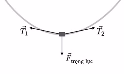 Sợi dây điện bị tác động bởi hai lực căng T và trọng lực của Trái Đất.