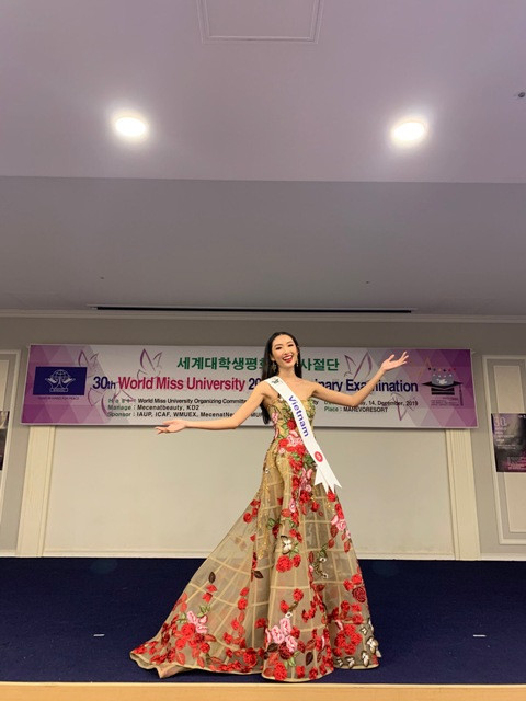 Trước đó, cô đã mang theo gần 80kg hành lý đại diện Việt Nam tham dự cuộc thi Hoa khôi Sinh viên Thế giới 2019. Thanh Khoa sở hữu gương mặt đậm chất Á Đông cùng số đo 3 vòng đạt chuẩn lần lượt là 82-64-92.