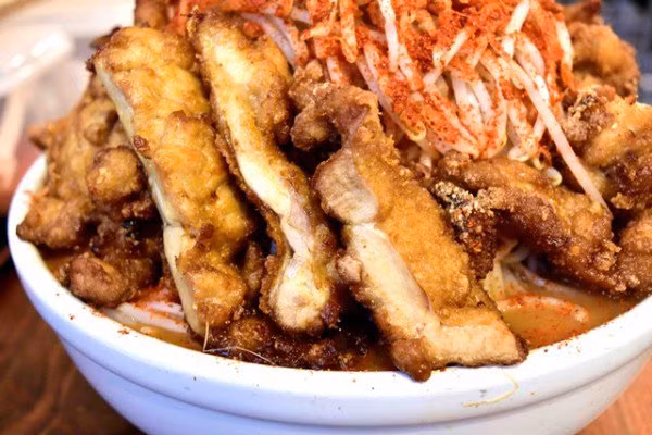 Tô mì khổng lồ với phần gà chiên đầy ắp.