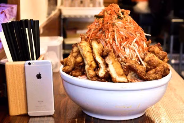 Nếu yêu thích món mỳ ramen trứ danh Nhật Bản và muốn thử sức bản thân, bạn có thể ghé qua nhà hàng Umakara Ramen Hyouri nằm tại thủ đô Tokyo. Tại đây, chủ cửa hàng sẵn sàng trả 438 USD (khoảng 9.8 triệu đồng) cho thực khách nào vượt qua tô mỳ khổng lồ thử thách của họ trong khoảng thời gian dưới 20 phút.