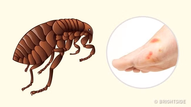 Vết cắn của bọ chét có thể dễ dàng bị nhầm lẫn là dị ứng hoặc muỗi đốt bởi cũng có màu đỏ và sưng lên. Tuy nhiên, không giống như muỗi đốt, những vết cắn của bọ chét thường gây đau và ngứa hơn nhiều. Bọ chét thường tấn công phần chân và chỉ lúc đang ngủ con người mới trở thành nạn nhân của chúng. Một con bọ chét có thể cắn nhiều lần, vì vậy những vết đốm đỏ trên da thường cách nhau từ 1 – 2cm. Bọ chét cũng có thể truyền nhiều bệnh nhiễm trùng nghiêm trọng.