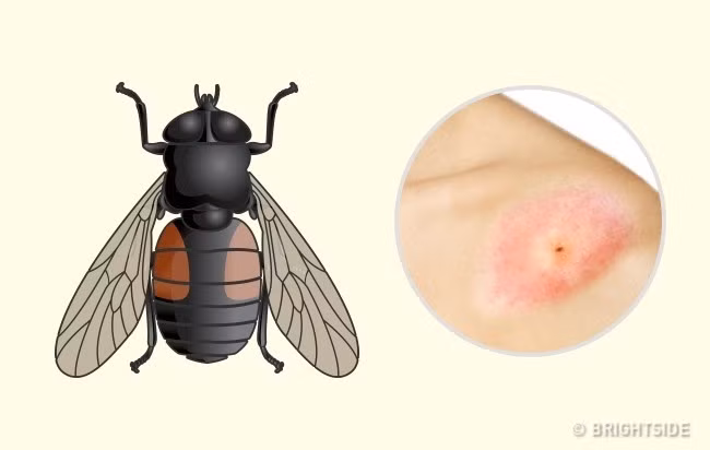 Ruồi trâu là một loại ruồi lớn thường đốt và hút máu gia súc, nhưng chúng cũng không tha cho con người. Vết đốt của ruồi trâu gây đau nhức dai dẳng, có thể kéo dài nhiều ngày và sinh ra những biến chứng khác như sốt cao, co giật, hôn mê. Ban đầu vết đốt nổi mẩn đỏ không quá 1mm, sau đó chúng có thể sưng lên và ngứa. Ruồi trâu thường truyền các bệnh khác nhau như bệnh Tularemia (bệnh nhiễm khuẩn cấp tính do vi khuẩn francisella tularensis gây ra) và bệnh than. Khi bị ruồi trâu đốt, cách xử lý tốt nhất là rửa bằng xà phòng và chườm đá.