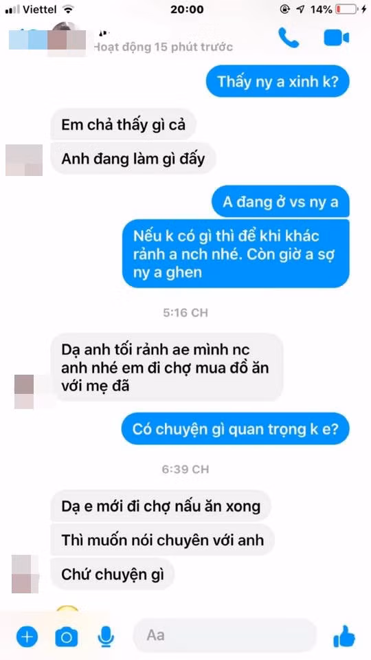 Rõ ràng, hai người đâu còn mối quan hệ gì với nhau nữa nhưng cô nàng vẫn đong đưa tích cực. Anh chàng lần nữa khẳng định mình đang ở bên người yêu, người mới khá hay ghen và muốn thoát khỏi cuộc trò chuyện. Ấy vậy nhưng cô gái này vẫn vờ như không biết, tiếp tục hẹn sau bữa cơm sẽ nhắn tin.