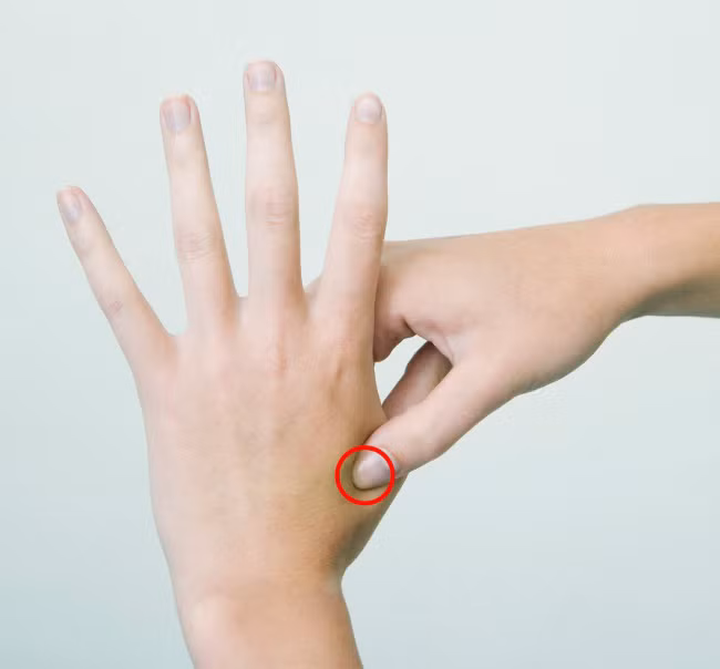 Cách bấm: Ấn lên điểm này dưới áp lực bằng đầu ngón tay và giữ trong một phút.
