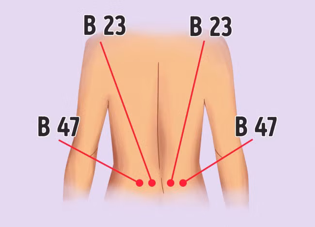Vị trí: Điểm này nằm trên đường hông, cách khoảng 2 – 4 ngón tay ở mỗi bên tính từ xương sống.