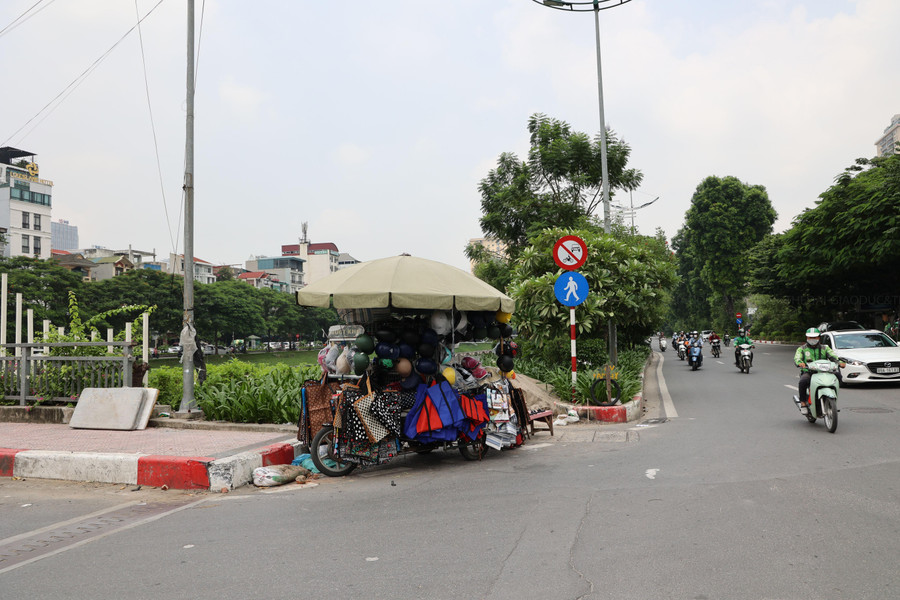 | Tuy nhiên, ngay sau khi rào chắn, một số hộ dân lợi dụng khu vực rào chắn để tập kết rác thải xây dựng; chặn lối vào đường dành cho người đi bộ để bán trà đá, thậm chí dừng đỗ xe tải để kinh doanh hoa quả. |