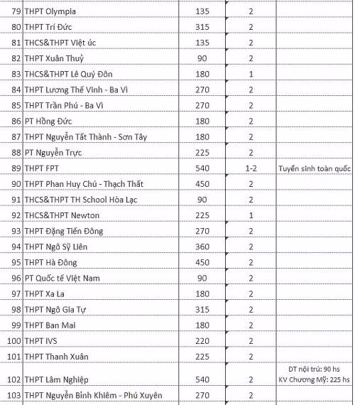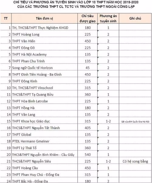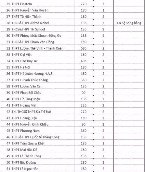 Bên cạnh đó, có 2 trường là THPT Khoa học giáo dục và THCS-THPT Nguyễn Siêu tuyển sinh hệ song bằng.
