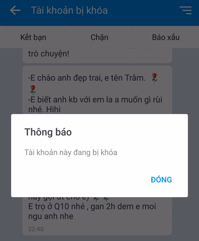 Một nickname đang hoạt động hôm trước nhưng hôm sau sẽ bị Zalo khóa, không thể sử dụng. Các cô gái tiếp tục tạo các nick mới và tiếp tục bị khóa.