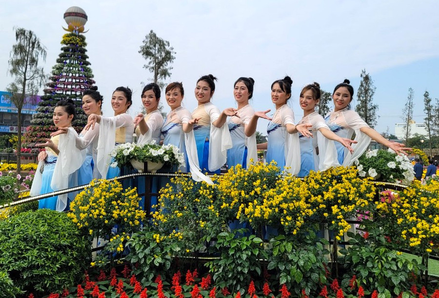 | Đông đảo du khách gần xa đến tham quan, thưởng thức, chiêm ngưỡng khung cảnh rực rỡ sắc màu và chụp ảnh check in bên các loài hoa. |