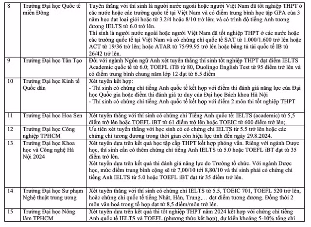 Danh sách các trường đại học xét tuyển bằng chứng chỉ IELTS năm 2024: