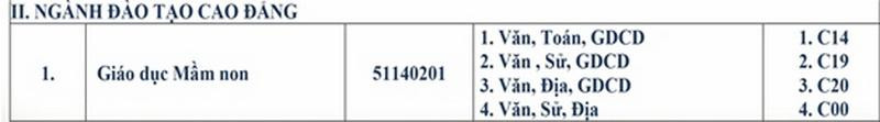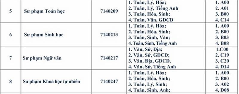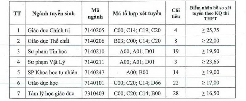 | 7140246 | Sư phạm Công nghệ | 42 | A00: Toán, Vật lý, Hoá học |