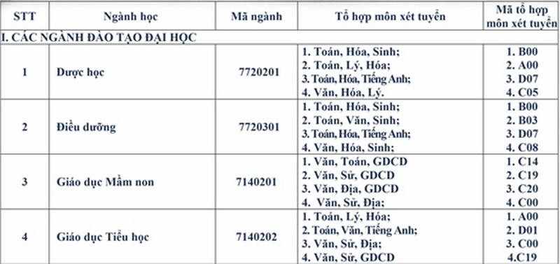 | Mã ngành | Ngành học | Chỉ tiêu | Tổ hợp xét tuyển |