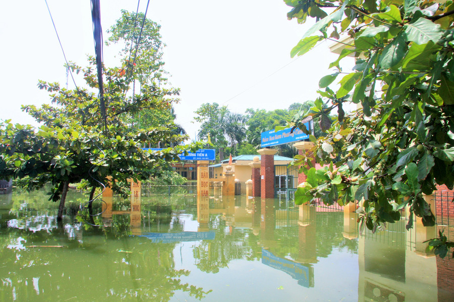 | Trường Tiểu học Nam Phương Tiến A cũng đang ngập sâu trong nước |