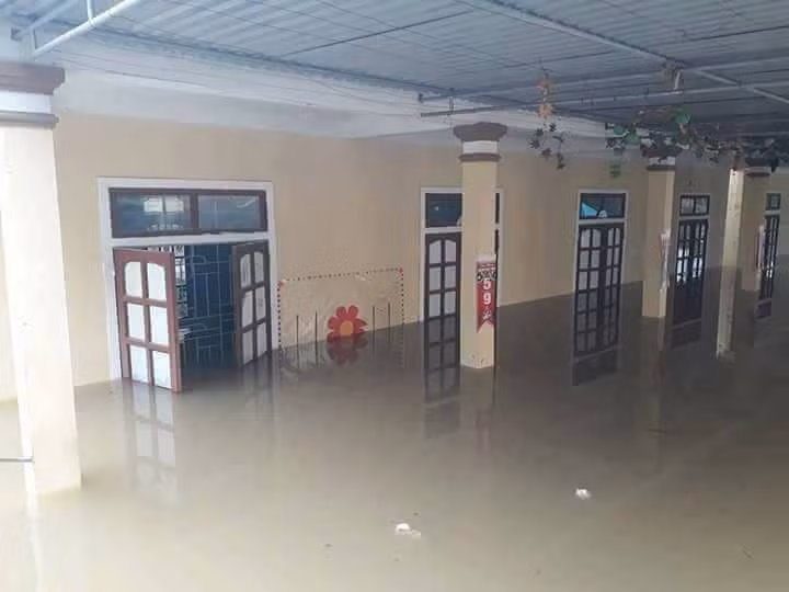 | Trường Tiểu học 12/9 (xã Hội Sơn, Anh Sơn) nước ngập gần hết tầng trệt. |