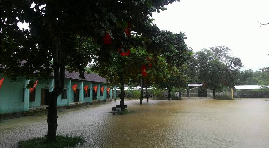 | Do địa bàn thấp, trũng, trường THCS Hoa Sơn (Anh Sơn) cũng bị ngập cục bộ. |