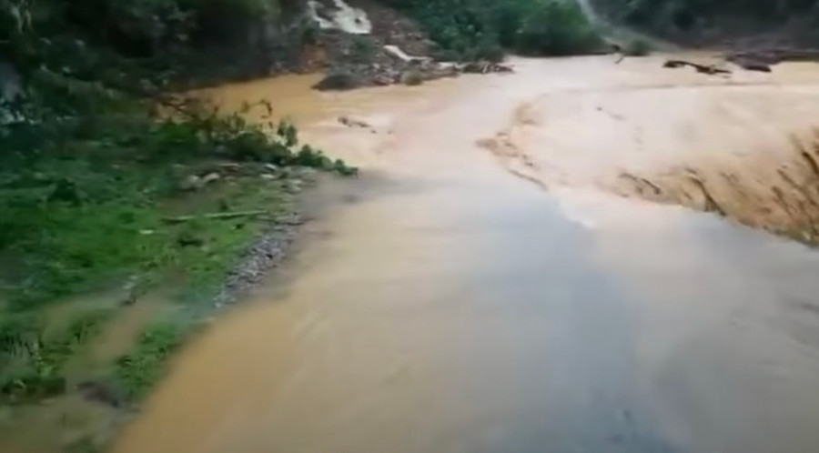 | Nhiều tuyến đường ở Hương Khê bị chia cắt do mưa lũ. |