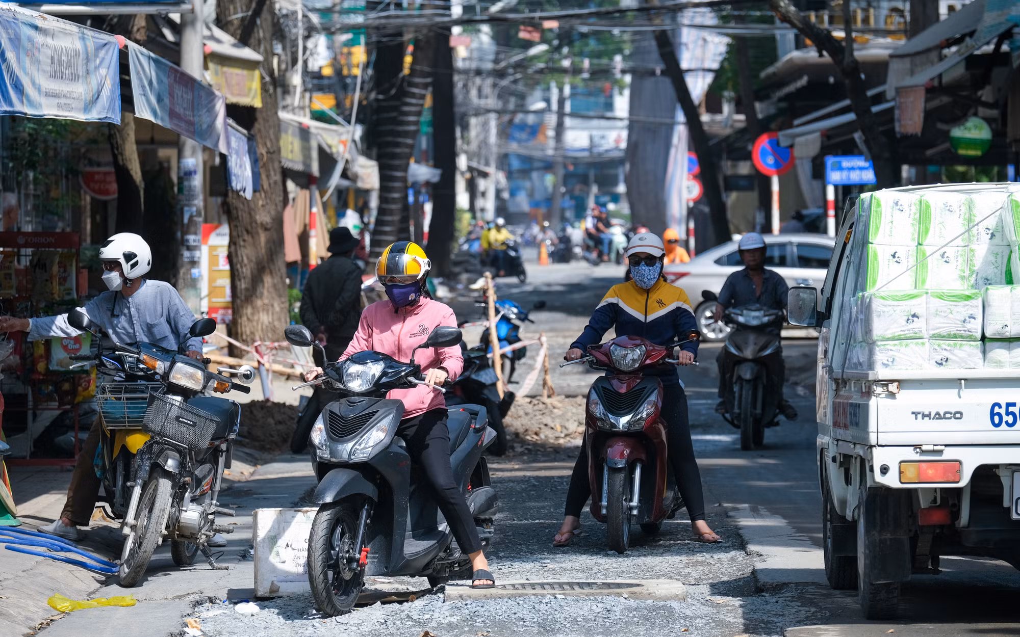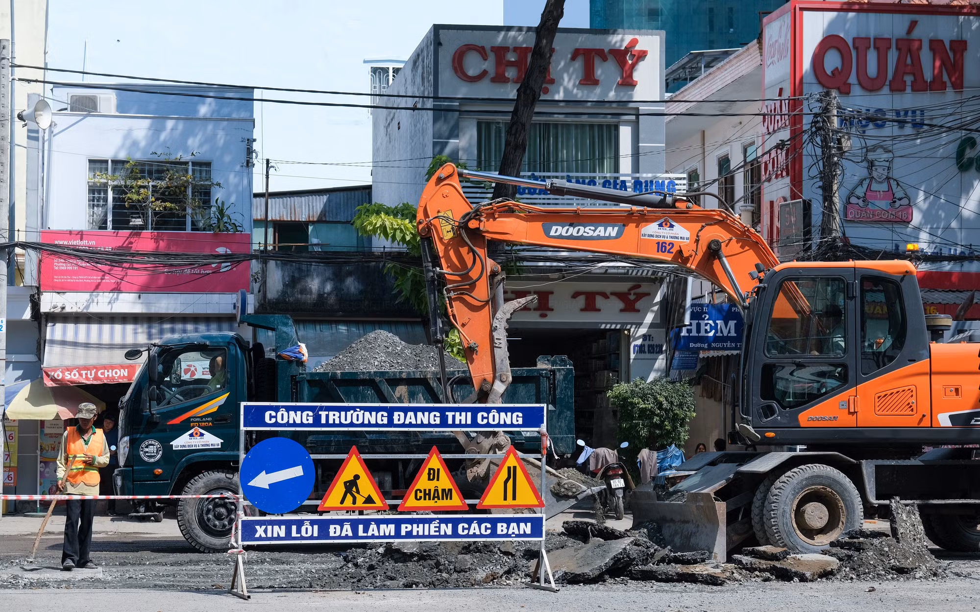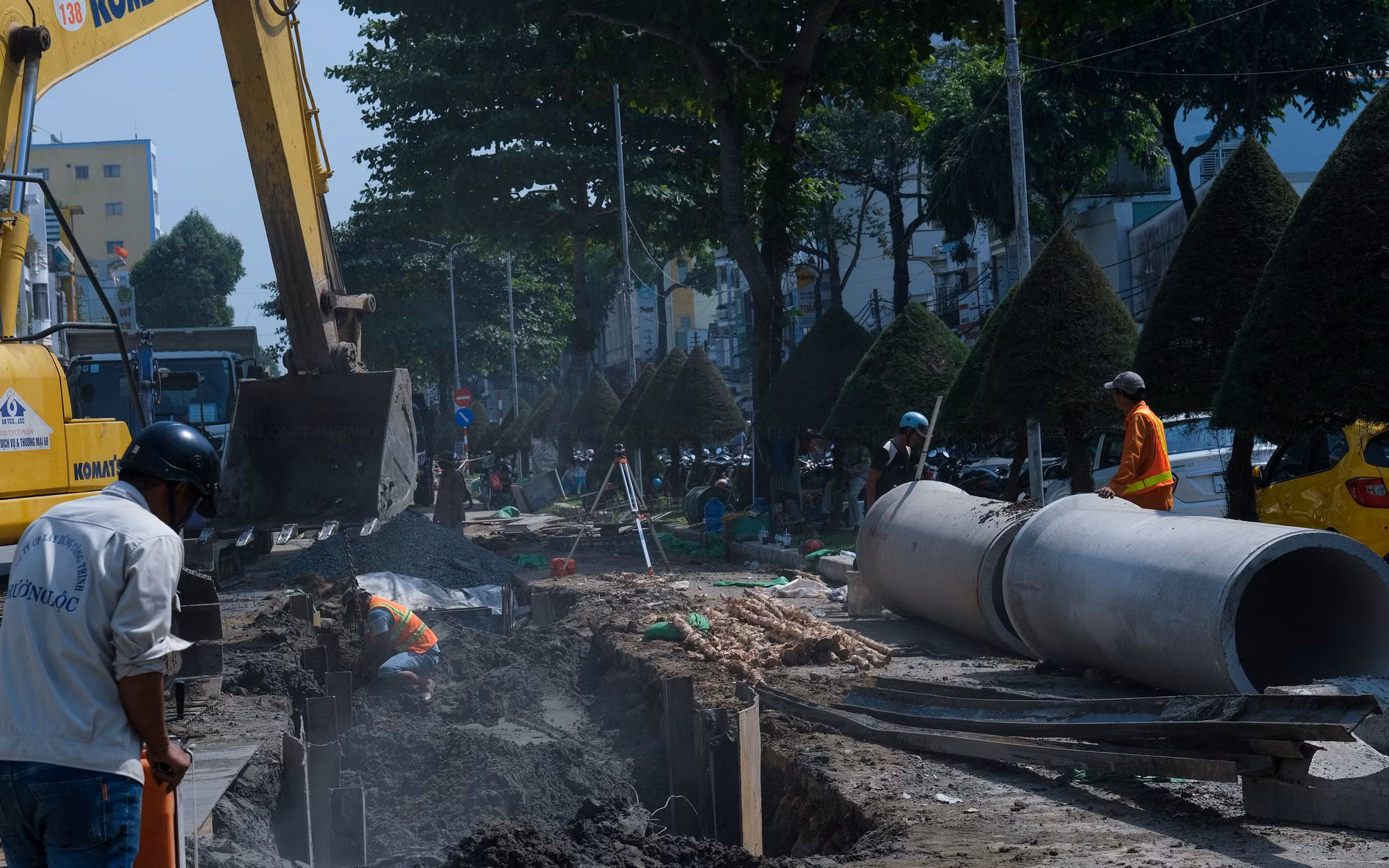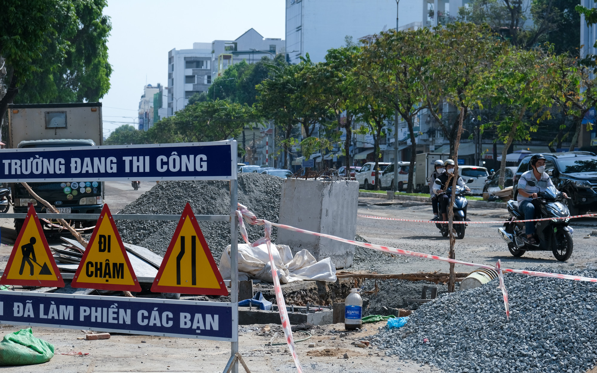 Tại tuyến đường Nam Kỳ Khởi Nghĩa, quận Ninh Kiều vẫn ngổn ngang gạch đá, cống thoát nước gây nguy hiểm cho người dân qua lại. Ông Tâm Anh chia sẻ: "Công trình kéo dài hàng tháng nay vẫn chưa xong, Tết đến nơi mà đơn vị còn chưa bàn giao mặt bằng".