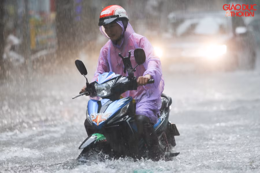 | Chỉ sau 30 phút mưa lớn, tuyến đường Vương Thừa Vũ (Hà Nội ) đã chìm trong biển nước |