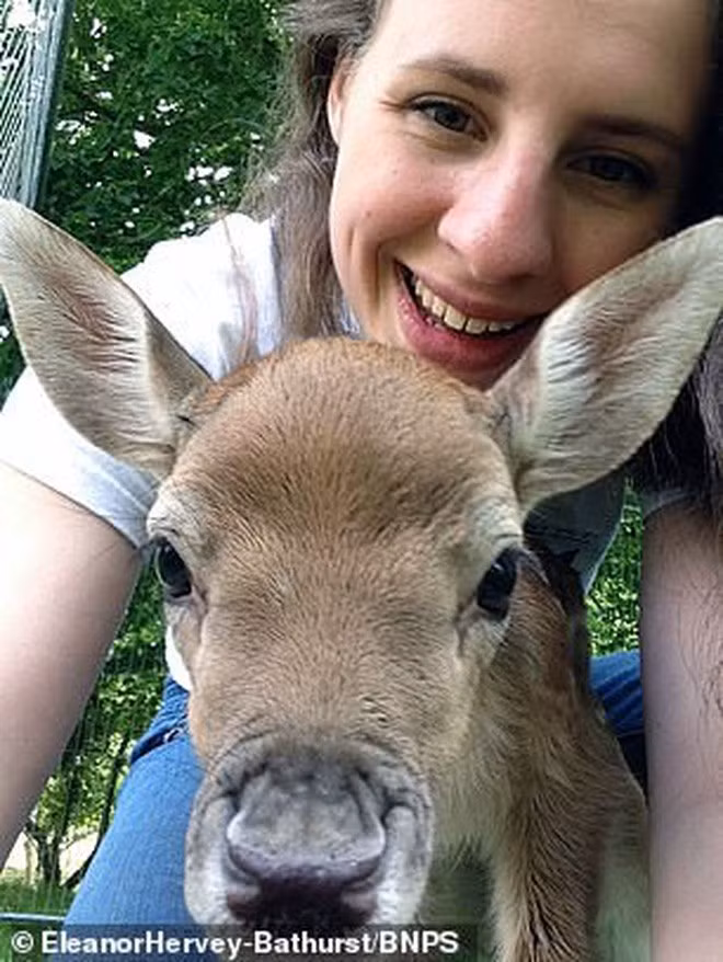 Chú hươu đực tên Inchy đã may mắn được gia đình cô Hervey-Bathurst, 24 tuổi, cứu sống khi bị mẹ bỏ rơi và nhiều con trong đàn tấn công, Hervey kể: "Mẹ của Inchy hạ sinh nó ngay giữa cánh đồng.