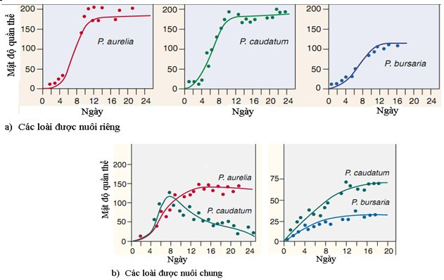 b. Nhận định trên chỉ được xác thực khi các yếu tố khác của ổ sinh thái đã được khống chế chặt chẽ. Ví dụ, loài P. aurelia tăng về số lượng trong khi loài P. caudatum giảm về số lượng và bị chết chỉ được xác định là do cạnh tranh về ổ sinh thái nếu ta biết chắc chắn là loài P. aurelia không ăn thịt loài P. caudatum.
