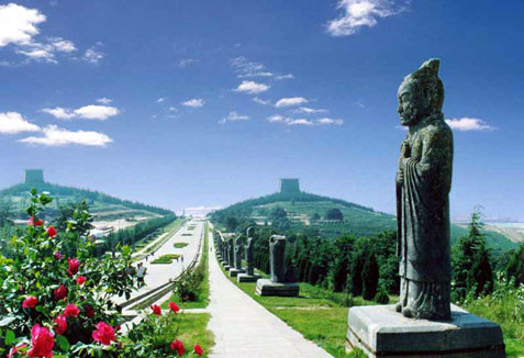 Càn Lăng được xây dựng suốt 30 năm, bắt đầu từ năm 638. Đường vào Càn Lăng được bố trí bởi 103 tượng đá, trong đó có 61 tượng biểu trưng cho các bộ tộc khác nhau của Trung Hoa. Điều đáng chú ý là 61 tượng các bộ tộc đều mất đầu bởi những nhát chém.