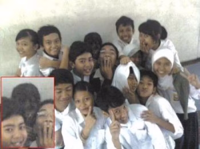 Bóng đen ghê rợn xuất hiện lù lù giữa đám đông học sinh đang chụp ảnh